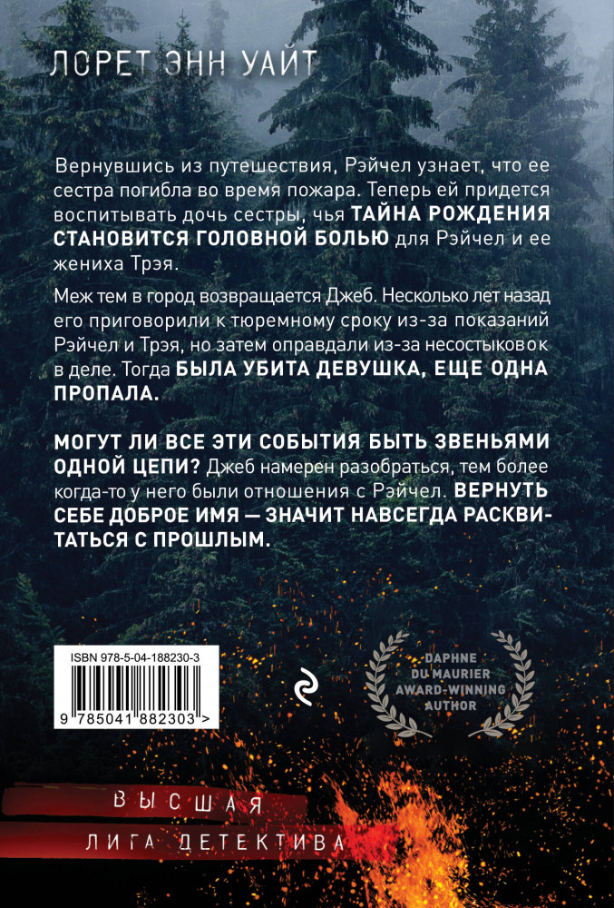 В данный момент этот товар отсутствует в продаже. Возможно, у нас найдется аналогичный или похожий товар здесь. Серия: Высшая лига детектива. Романы Лорет Энн Уайт (обложка) Вернувшись из путешествия, Рэйчел узнает, что ее сестра погибла во время пожара. Теперь ей придется воспитывать дочь сестры, чья тайна рождения становится головной болью для Рэйчел и ее жениха Трэя.