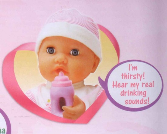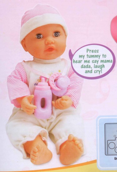 Joy Toy Кукла "Малышка Мила с бутылочкой"В данный момент этот товар отсутствует в продаже. Возможно, у нас найдется аналогичный или похожий товар здесь. Забавная кукла хочет кушать! Вам понравится, как Мила аппетитно пьет из бутылочки и отрыгивает после этого! Нажмите на её животик и послушайте, как она сладко произносит "Мама", смеётся и плачет. Изумительная малышка доставит Вашему ребенку много приятных эмоций! |
