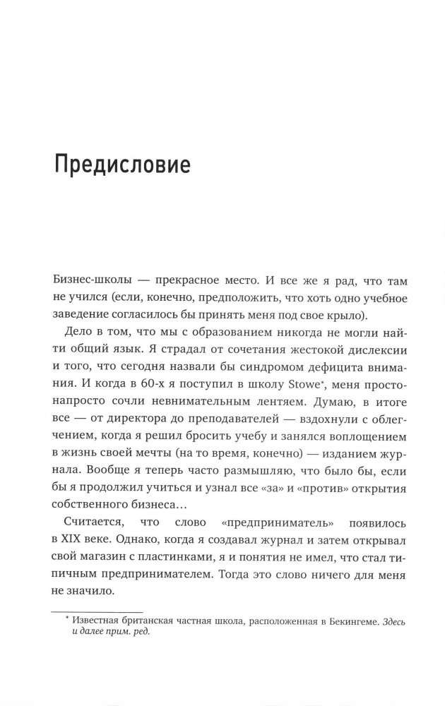 Бизнес в стиле Virgin. Чему вас не научат в бизнес-школеВ данный момент этот товар отсутствует в продаже. Возможно, у нас найдется аналогичный или похожий товар здесь. Эта книга — неформальный бизнес-курс от одного из самых успешных предпринимателей наших дней — сэра Ричарда Брэнсона! С тех пор, как в юности Брэнсон оставил колледж, чтобы начать свой первый бизнес, он все делает по-своему — в оригинальном и эпатажном стиле. В этой книге вы не найдете скучной теории. Здесь нет четкой структуры и системы. Эта книга — разговор по душам. Брэнсон рассказывает все, что знает о бизнесе, о взаимоотношениях с сотрудниками и клиентами, о создании нового продукта, об управлении компанией на разных этапах ее развития. Все, что пережил и передумал за сорок лет, в течение которых небольшой магазин по продаже пластинок превратился в огромную международную компанию с 400 подразделениями в 30 странах мира и с 50 тысячами сотрудников. Мысленно перелетая из страны в страну, из компании — в компанию, из 70-х в 2000-е и обратно, Брэнсон рассказывает свою историю и историю своего бизнеса. И в каждом из этих воспоминаний — огромное количество мудрых мыслей и неоценимых советов для всех, кто хочет построить свой бизнес и добиться успеха в жизни и в любимом деле. |