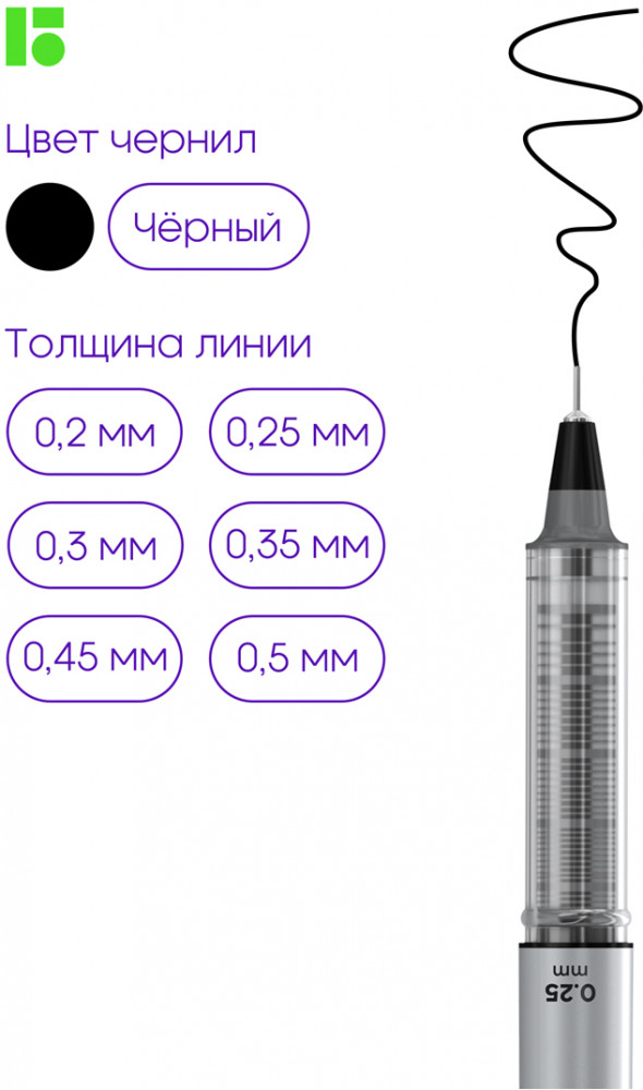 Профессиональный пишущий узел не только обеспечивает толщину линии с шагом 0,05 мм, но и позволяет ручке продолжить писать, даже если забыть закрыть ее колпачком на срок до 72 часов. Удобное окошко на обороте ручке позволит контролировать остаток чернил и заранее подготовить новый инструмент. А металлический клип — надежно закрепить ручку на скетчбуке, планшете или кармане.