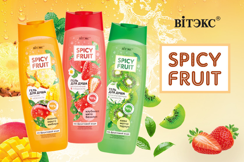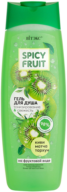Вiтэкс Гель для душа на фруктовой воде «Киви, матча, тархун»