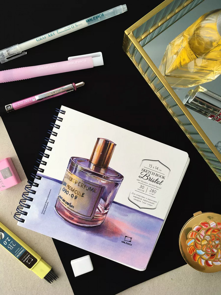 МалевичЪ Скетчбук для графики и маркеров-35% +12 плотная бумага не протекают не пропитываются