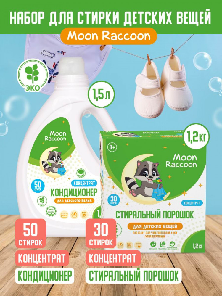 Moon Raccoon Набор стиральный порошок и кондиционер для бельяВ данный момент этот товар отсутствует в продаже. Возможно, у нас найдется аналогичный или похожий товар здесь. Экологичный гипоаллергенный стиральный порошок для детского белья (концентрат) предназначен для эффективного и бережного ухода за цветным и белым бельем из всех видов тканей кроме шерсти, шелка, пуховых изделий и изделий из кожи. Средство смягчает жесткость воды, что увеличивает эффективность стирки, предотвращает деформацию и усадку тканей, препятствует вымыванию цвета, сохраняя его яркость. Полностью выполаскивается водой, что исключает риск раздражения для чувствительной и детской кожи. Натуральный состав безопасен для человека. Биоразлагаемая формула безопасна для окружающей среды — после стирки все составляющие распадаются на компоненты и затем разлагаются в естественной среде. |