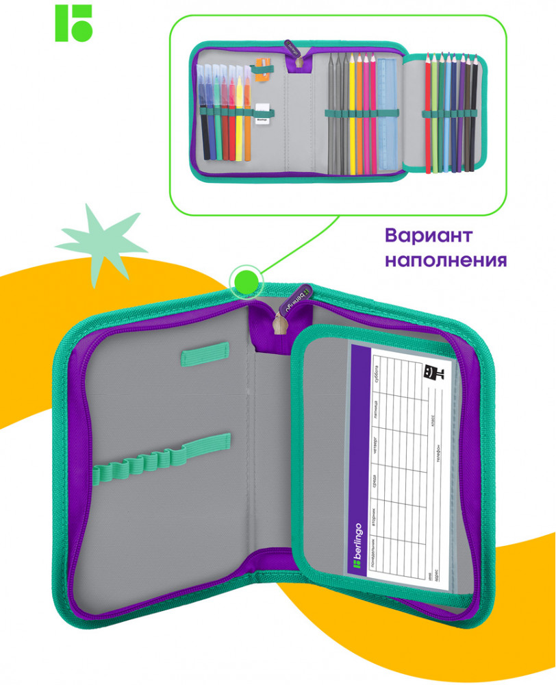 Berlingo Пенал школьный «Dragonfly»В данный момент этот товар отсутствует в продаже. Возможно, у нас найдется аналогичный или похожий товар здесь. Пенал школьный для девочки «Berlingo» станет отличным помощником в учёбе. Модель размера имеет одно отделение, закрывающееся на молнию. Пенал изготовлен из качественного полиэстера с принтом на внутренней и внешней поверхности. Внутри имеются резиночки-крепления для канцтоваров. Упакован в индивидуальный пакет. Поставляется без наполнения. |