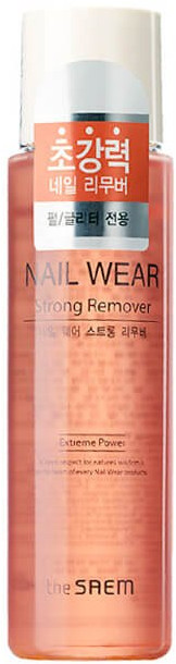 Средство, специально разработанное для удаления особо стойкого лакового покрытия, поможет без усилий справиться с нанесением 2-3 слоев. Жидкость для снятия лака The Saem Nail Wear Strong Remover легко удалит декоративную окраску, поухаживает за ноготками, снабдит натуральными питательными компонентами.