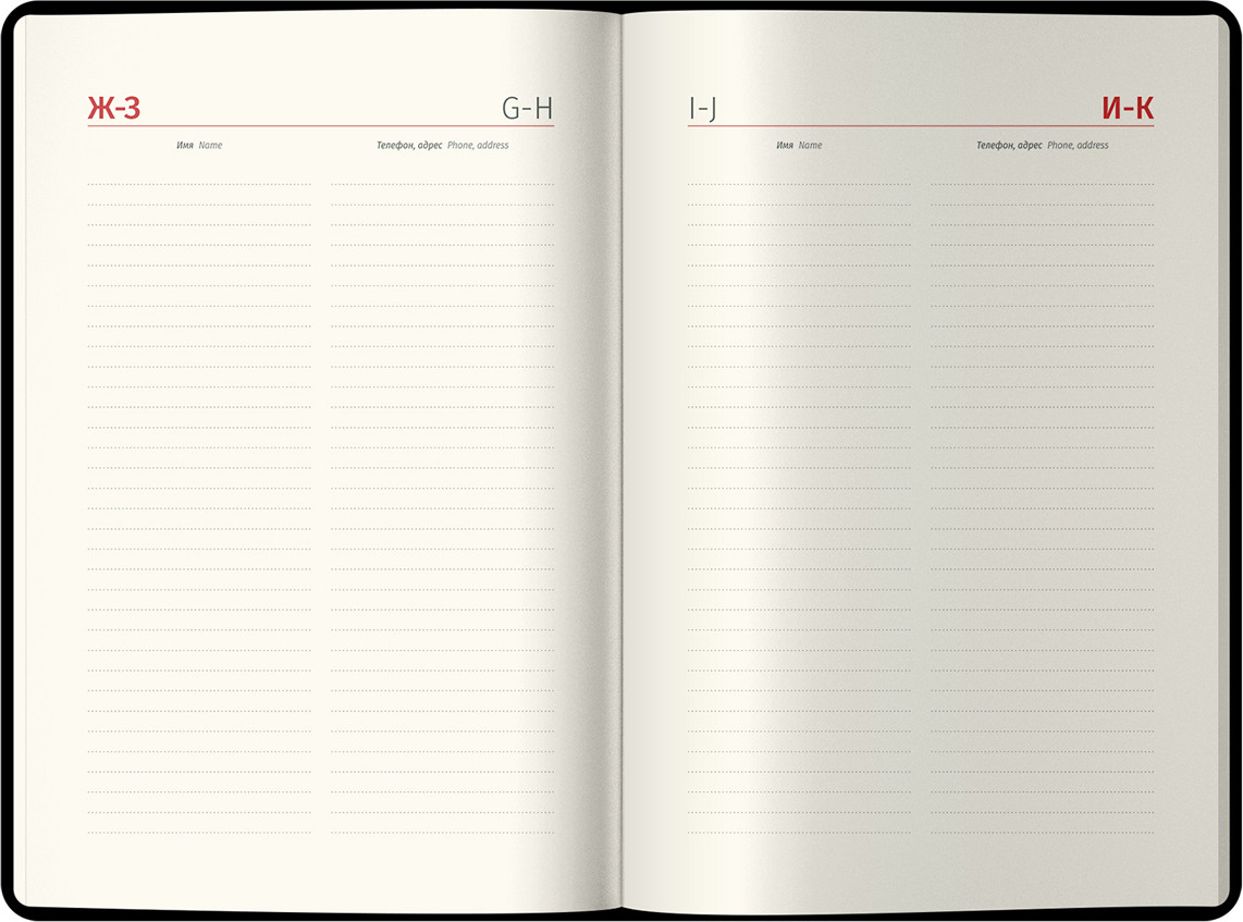 В целом, удобно пользоваться, много полезной информации, есть листы для планов помесячно, листы с алфавитом для записи по заглавным буквам.