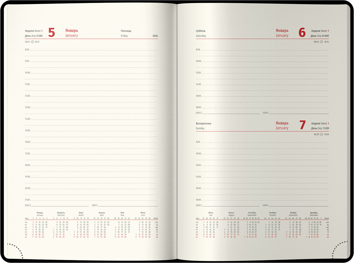 Красивая обложка, хороший переплет, даты и дни недели - хороший шрифт