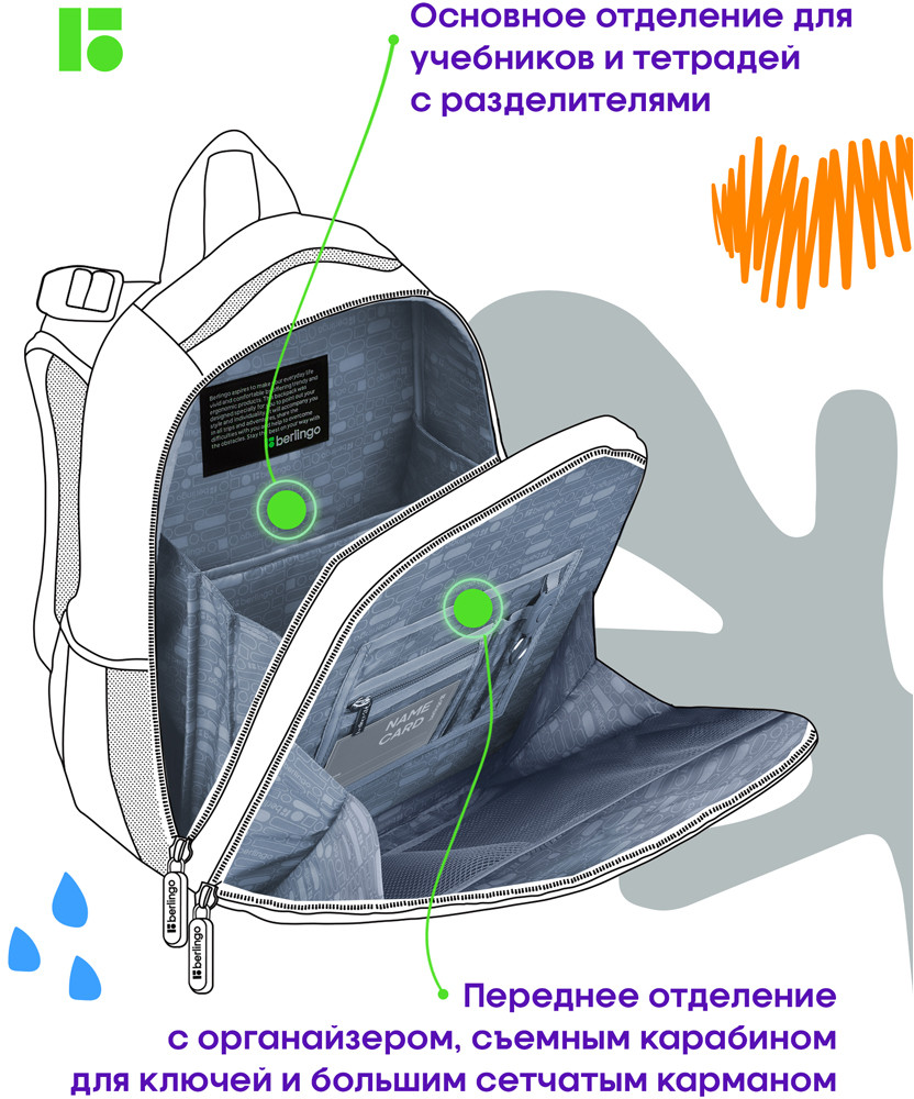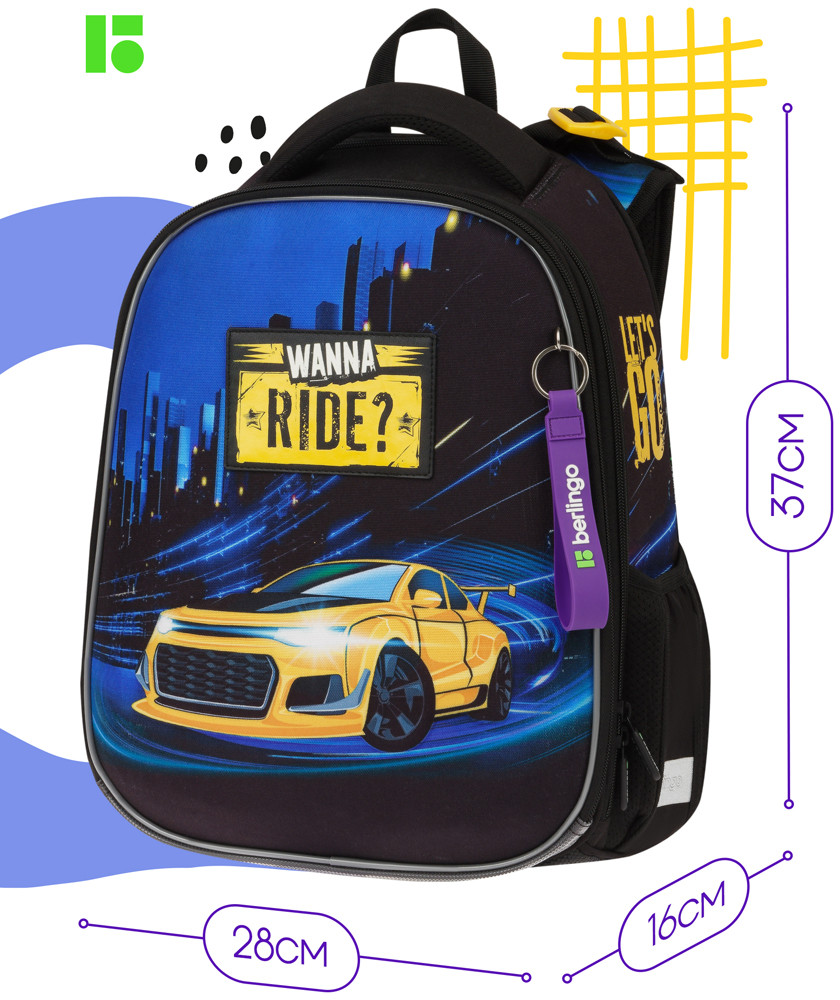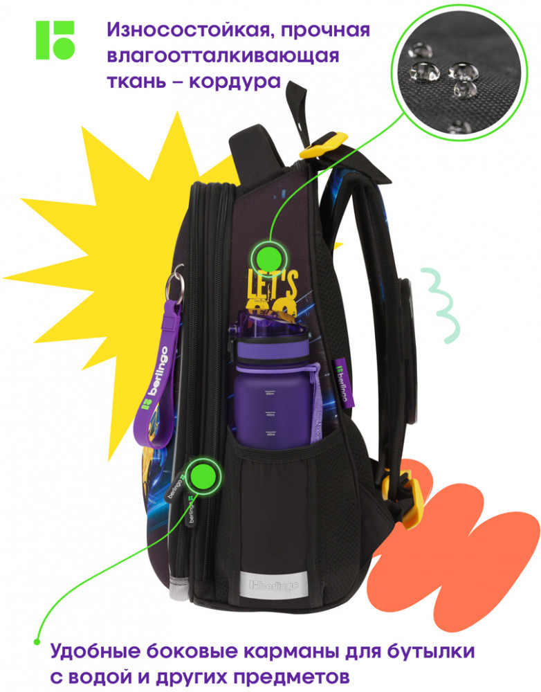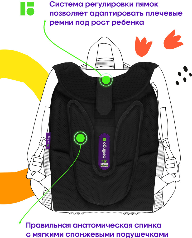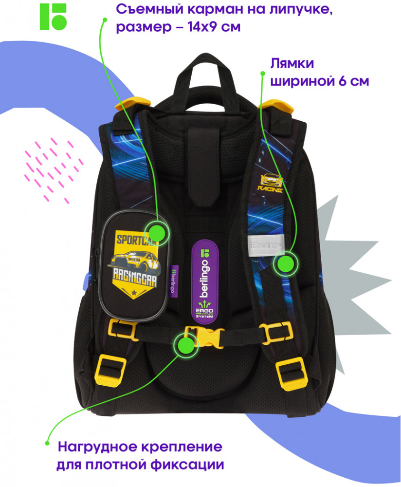 Berlingo Рюкзак «Ride»В данный момент этот товар отсутствует в продаже. Возможно, у нас найдется аналогичный или похожий товар здесь. Серия: Expert Max Эргономичный ранец Berlingo серии Expert Max для детей младшего и среднего школьного возраста выполнен из экологичного ЭВА-материала с покрытием из высокопрочной нейлоновой ткани кордура. Вес школьного ранца − 1 кг, объём − 17,5 л. За счет особой структуры нити в ткани достигнута четырёхкратная стойкость к истиранию по сравнению с простым нейлоном. Кордура обладает водоотталкивающими свойствами и легко чистится. Благодаря анатомической вентилируемой спинке, регулируемым по длине и высоте лямкам, а также нагрудному креплению ранец плотно фиксируется на спине ребенка, что помогает равномерно распределить нагрузку и сохранить правильную осанку. Ранец для школы имеет 2 отделения, 2 боковых кармана на резинке, съемный кошелек на лямке для быстрого доступа к необходимым вещам. Внутри предусмотрены разделители для учебных пособий, органайзер для письменных принадлежностей, карман для мобильного телефона, съемный карабин для ключей и именная карточка для подписи. Уплотненная мягкая ручка и петля для подвешивания к парте делают ранец очень удобным. Дно выполнено из водонепроницаемого материала с пластиковыми ножками для защиты от влаги. Световозвращающие элементы на лямках, передней и боковых частях ранца обеспечивают безопасность ребенка в темное время суток. Особенностью данной модели является наличие дождевика, расположенного в специальном кармашке в верхней части ранца. Дождевик оснащен светоотражающими элементами. Фирменный брелок в подарок. |