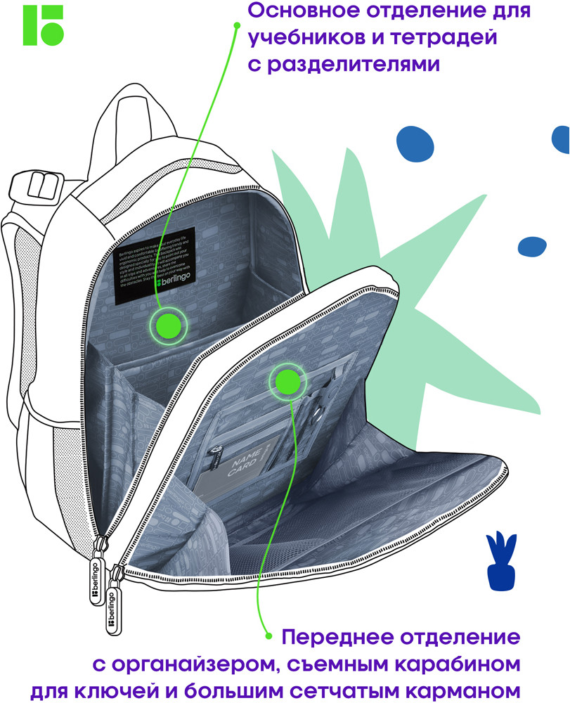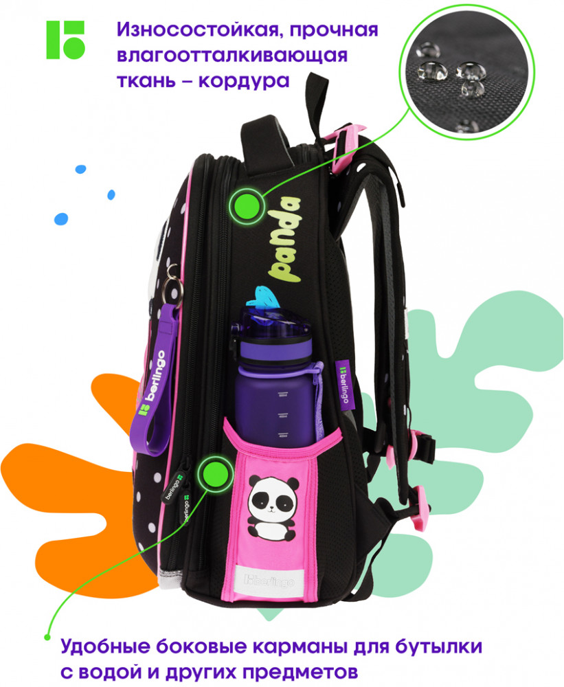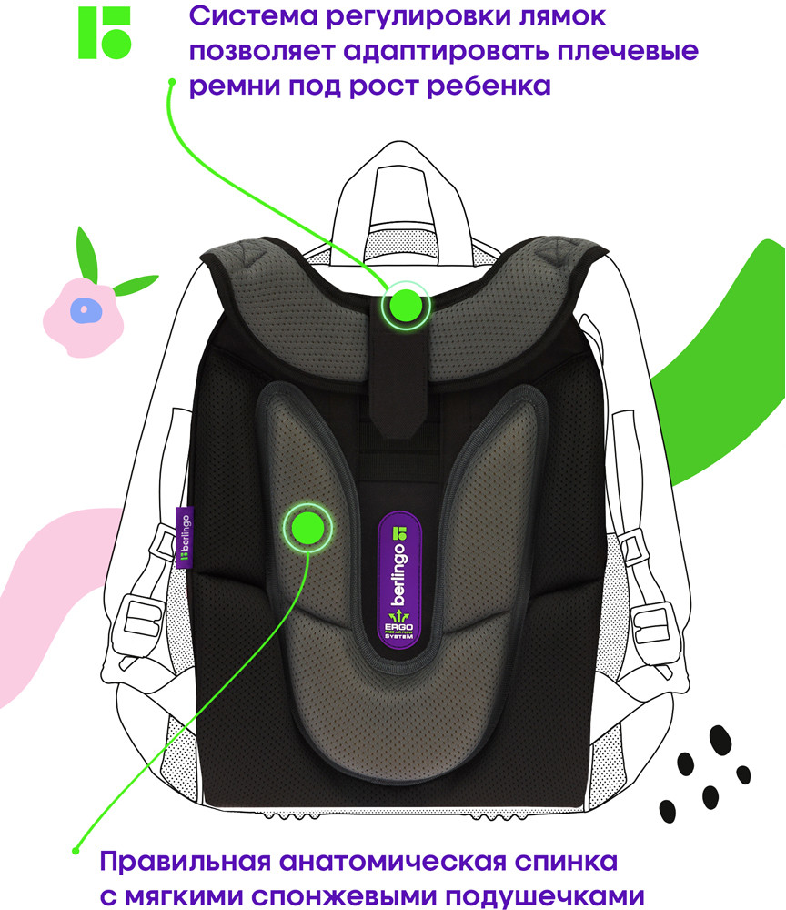 💳 Оплатить за товар можно при получении 🇰🇿 Есть бесплатная доставка по Казахстану от 1 дня 🎁 Копите бонусы с каждой покупки Серия: Expert Box Эргономичный ранец Berlingo серии Expert Box для детей младшего и среднего школьного возраста выполнен из экологичного ЭВА-материала с покрытием из высокопрочной нейлоновой ткани кордура. Вес школьного ранца − 1 кг, объём − 17,5 л. За счет особой структуры нити в ткани достигнута четырёхкратная стойкость к истиранию по сравнению с простым нейлоном. Кордура обладает водоотталкивающими свойствами и легко чистится. Благодаря анатомической вентилируемой спинке, регулируемым по длине и высоте лямкам, а также нагрудному креплению ранец плотно фиксируется на спине ребенка, что помогает равномерно распределить нагрузку и сохранить правильную осанку. Ранец для школы имеет 2 отделения, 2 боковых кармана на резинке, съемный кошелек на лямке для быстрого доступа к необходимым вещам. Внутри предусмотрены разделители для учебных пособий, органайзер для письменных принадлежностей, карман для мобильного телефона, съемный карабин для ключей и именная карточка для подписи. Уплотненная мягкая ручка и петля для подвешивания к парте делают ранец очень удобным. Дно выполнено из водонепроницаемого материала с пластиковыми ножками для защиты от влаги. Световозвращающие элементы на лямках, передней и боковых частях ранца обеспечивают безопасность ребенка в темное время суток. Пенал и мешок для обуви в комплекте. Фирменный брелок в подарок. |