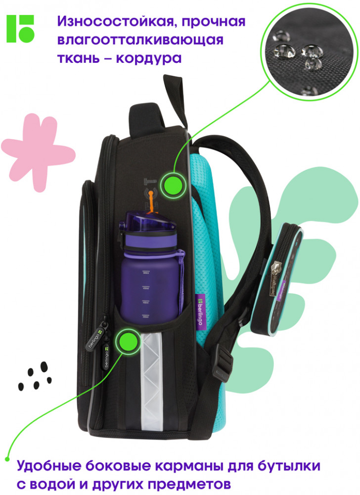 💳 Оплатить за товар можно при получении 🇰🇿 Есть бесплатная доставка по Казахстану от 1 дня 🎁 Копите бонусы с каждой покупки Серия: Expert Plus Эргономичный ранец Berlingo серии Expert Plus подходит для детей младшего и среднего школьного возраста. Модель выполнена из легкого экологичного ЭВА-материала с покрытием из высокопрочной нейлоновой ткани кордура, которая обладает водоотталкивающими свойствами и легко чистится. Ранец объёмом 16,5 литров имеет 2 отделения, 2 боковых кармана, съемный кошелек на лямке для быстрого доступа к необходимым вещам. Внутри предусмотрены разделители для учебных пособий, а также органайзер, которые помогают ребенку поддерживать порядок и аккуратно хранить школьные принадлежности. Благодаря анатомической вентилируемой спинке, а также регулируемым по длине лямкам и нагрудному креплению ранец плотно фиксируется на спине ребенка, равномерно распределяется нагрузка и сохраняется правильная осанка. Ранец оснащен усовершенствованной конструкцией лямок с амортизирующим эффектом, которая помогает снизить нагрузку на плечи и спину ребенка. Дно выполнено из водонепроницаемого материала и оснащено пластиковыми ножками для защиты содержимого от влаги. Ранец оснащен плотной ручкой и петлей для подвешивания. Световозвращающие элементы на лямках, передней и боковой частях ранца обеспечивают безопасность в темное время суток. Вес 1 кг. |