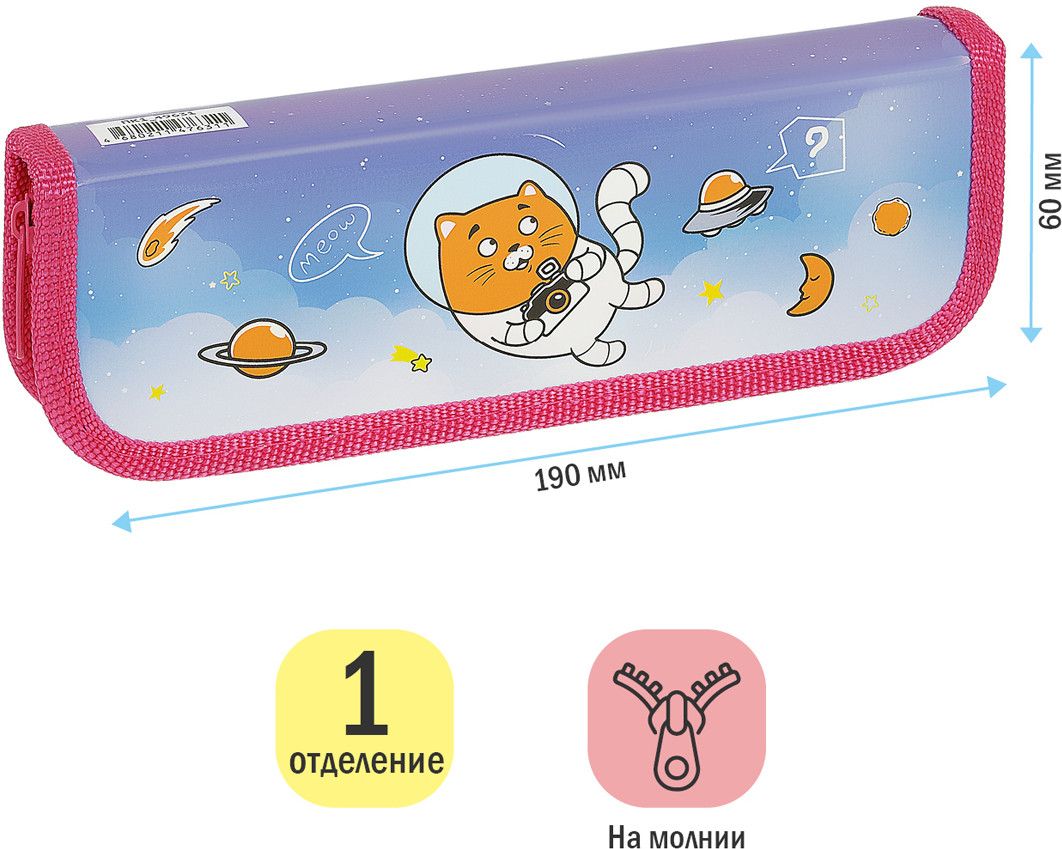 ArtSpace Пенал «Space Cat»В данный момент этот товар отсутствует в продаже. Возможно, у нас найдется аналогичный или похожий товар здесь. Удобный пенал для хранения канцелярских принадлежностей. Поставляется без наполнения, в индивидуальной упаковке. |