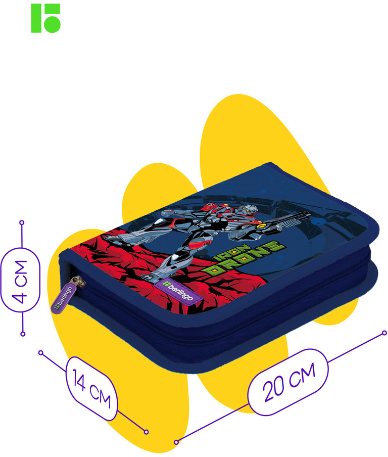 Berlingo Пенал школьный «Iron drone»В данный момент этот товар отсутствует в продаже. Возможно, у нас найдется аналогичный или похожий товар здесь. Пенал школьный для девочки «Berlingo» станет отличным помощником в учёбе. Модель размера имеет одно отделение, закрывающееся на молнию. Пенал изготовлен из качественного полиэстера с принтом на внутренней и внешней поверхности. Внутри имеются резиночки-крепления для канцтоваров. Упакован в индивидуальный пакет. Поставляется без наполнения. |