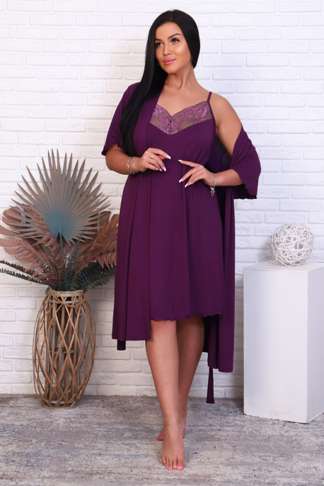 Комплект очень понравился, сразу стала пользоваться, сорочка для наших алматинских летних ночей очень подошла, в ней не жарко и халатик на утро очень удобно, пришила на уровне талии 2 пуговки и обхожусь без пояса (ну это уже возрастное - всё что стягивает мешает)