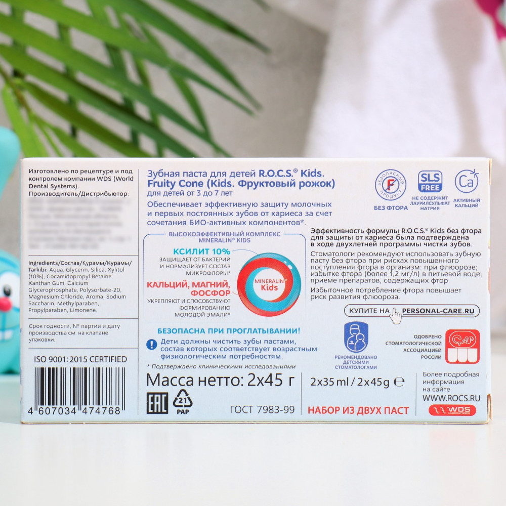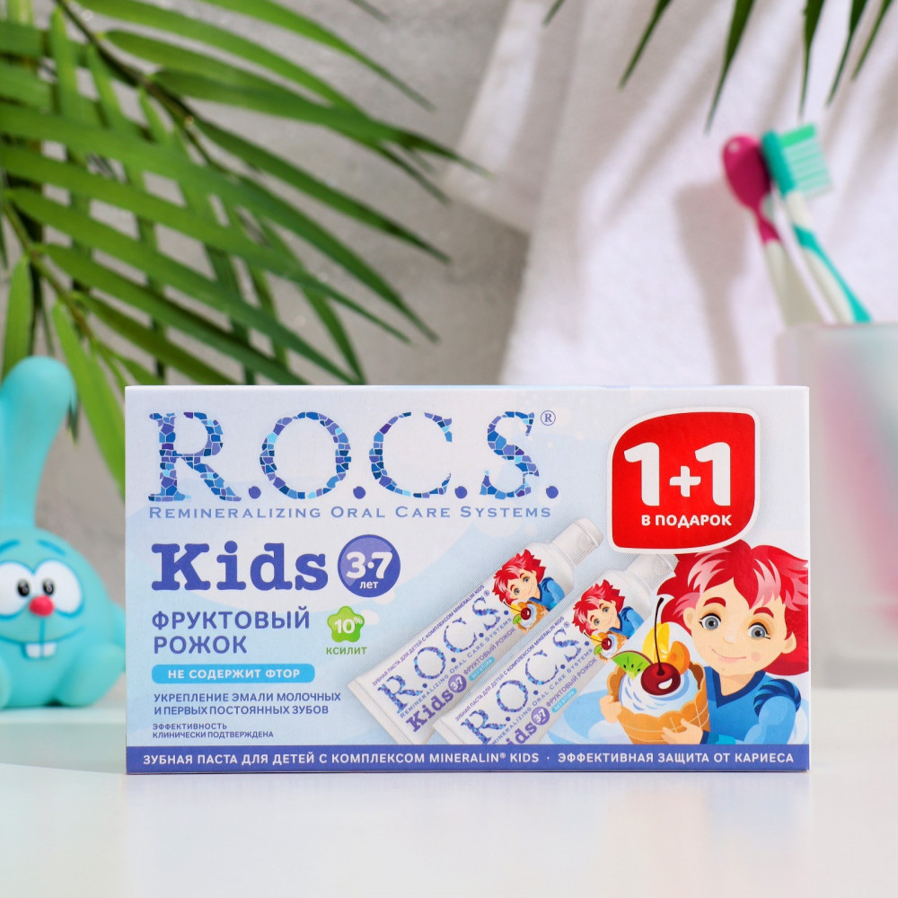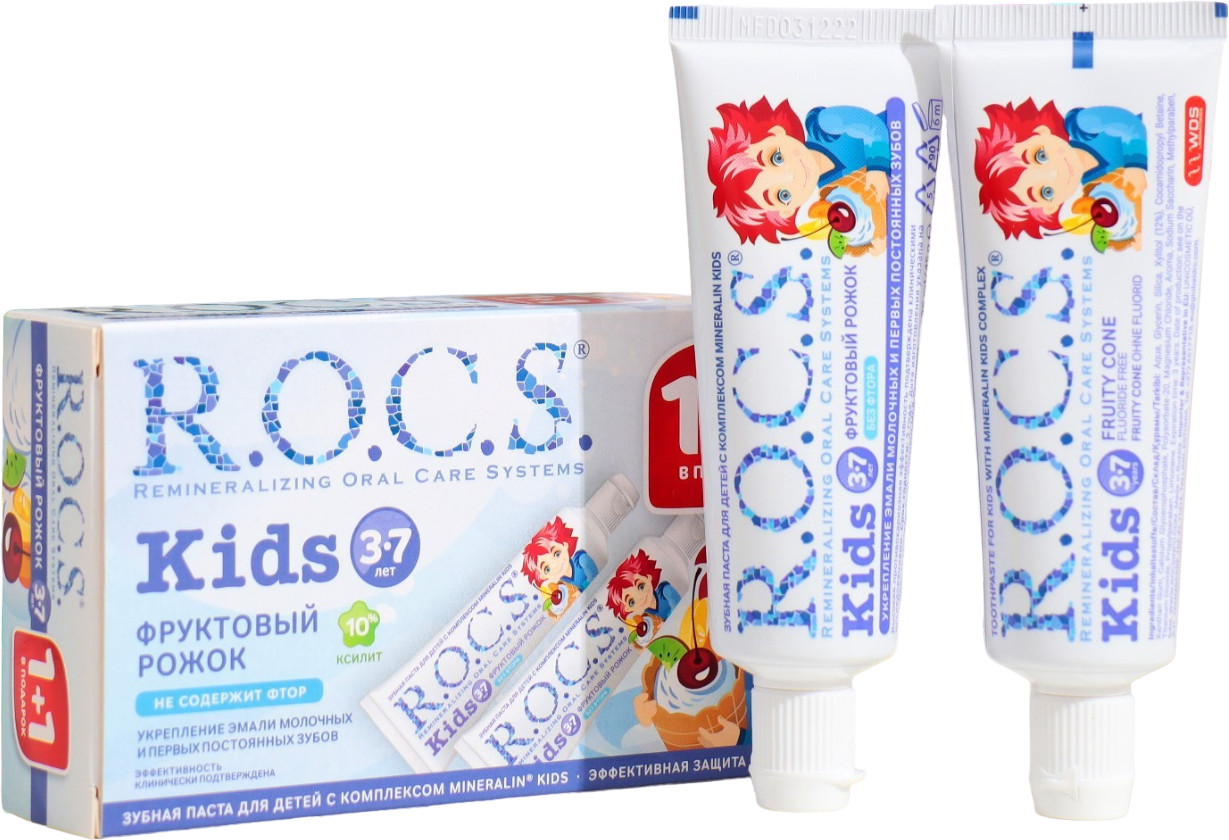 R.O.C.S. Набор зубной пасты детской со вкусом мороженого «Фруктовый рожок»В данный момент этот товар отсутствует в продаже. Возможно, у нас найдется аналогичный или похожий товар здесь. Серия: Kids Зубная паста без фтора R.O.C.S. Kids «Фруктовый рожок» со вкусом мороженого для детей от 3 до 7 лет разработана при участии стоматологов с учетом возрастных особенностей ребенка. R.O.C.S. Kids «Фруктовый рожок» является эффективным средством защиты от кариеса, не содержащим фтора. Противокариозная и противовоспалительная защита обеспечивается двумя активными компонентами комплекса Mineralin Kids: высокими концентрациями ксилита (12%), который подавляет кариесогенные бактерии, и биодоступными минералами — глицерофосфатом кальция и хлоридом магния — источниками кальция, фосфора и магния. Обладает свойствами пребиотика: нормализует микробный состав полости рта, что особенно важно при дисбактериозах полости рта. |