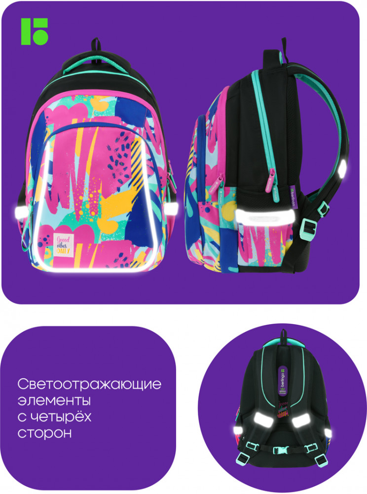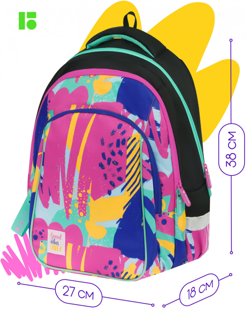 Berlingo Рюкзак «Abstract pink»В данный момент этот товар отсутствует в продаже. Возможно, у нас найдется аналогичный или похожий товар здесь. Серия: Comfort Эргономичный рюкзак серии Comfort для детей младшего и среднего школьного возраста выполнен из прочного нейлона, благодаря чему изделия обладают повышенной износостойкостью. В рюкзаке предусмотрены 3 отделения и 2 боковых кармана, скрытый карман на спинке. Внутри имеется 1 карман на резинке, 1 открытый карман и 1 карман из сетки на молнии. Эргономичная вентилируемая спинка, широкие регулируемые лямки и нагрудное крепление обеспечивают равномерное распределение нагрузки на позвоночник, а усиленное дно, плотная ручка и петля для подвешивания делают рюкзак максимально удобным. Световозвращающие элементы помогают обеспечить безопасность ребенка в темное время суток. |