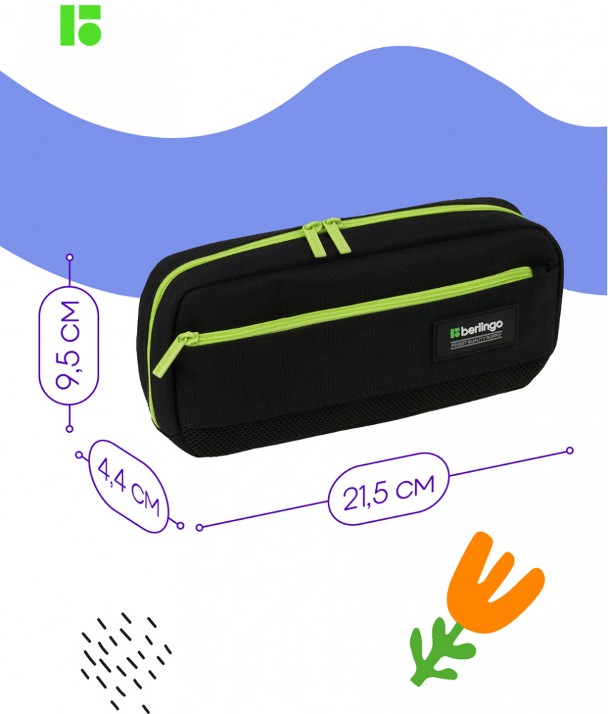 Berlingo Пенал школьный «Black and yellow»В данный момент этот товар отсутствует в продаже. Возможно, у нас найдется аналогичный или похожий товар здесь. Пенал школьный для девочки «Berlingo» будет отличным помощником в учёбе. Модель имеет одно отделение и один карман, закрывающиеся на молнию. Модель выполнена из полиэстера стильных пастельных цветов с черными молниями. Упакован в индивидуальный пакет. Поставляется без наполнения. |