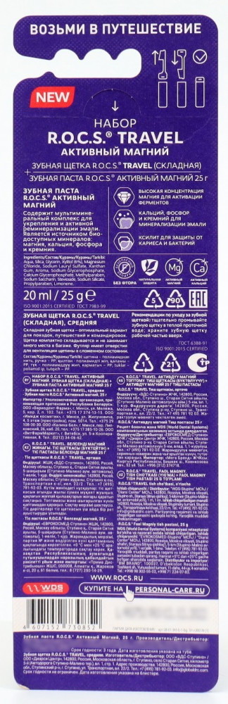 R.O.C.S. Набор для путешествий «Travel. Активный магний»В данный момент этот товар отсутствует в продаже. Возможно, у нас найдется аналогичный или похожий товар здесь. Состав набора: |
