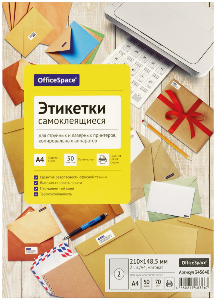 💳 Оплатить за товар можно при получении 🇰🇿 Есть бесплатная доставка по Казахстану от 1 дня 🎁 Копите бонусы с каждой покупки Этикетки самоклеящиеся OfficeSpace предназначены для многофункционального информационного этикетирования, например, адресные этикетки на конверты, ценники на товары, штрихкоды, информационные сообщения. В упаковке 50 листов формата А4 плотностью 70 г/м2, количество фрагментов — 2 (210 × 148,5 мм). Этикетки самоклеящиеся OfficeSpace и лазерных принтеров, копировальных аппаратов. Перед загрузкой в оргтехнику рекомендуется пролистывать бумагу с четырех сторон. |