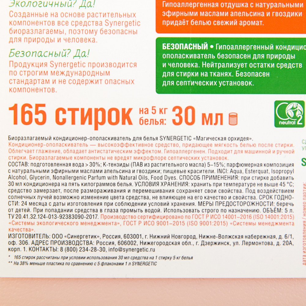 Synergetic Кондиционер-ополаскиватель для белья биоразлагаемый «Магическая орхидея»