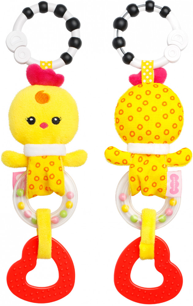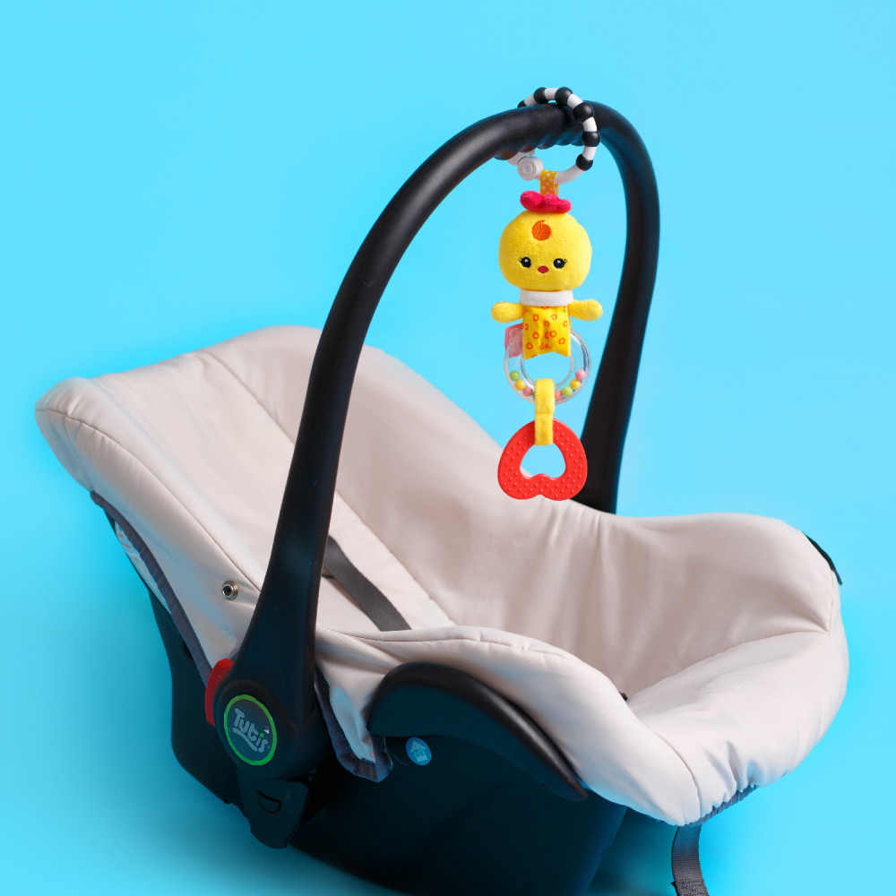 Игрушка-подвеска «Цыпленок Бро» с погремушкой для кроватки, коляски для новорожденных и автокресла станет незаменимым помощником в развитии малыша. Игрушка имеет две погремушки, которые помогают в развитии внимания, а фигурный грызунок для детей позволяет справиться с неприятными ощущениями при прорезывании зубов.