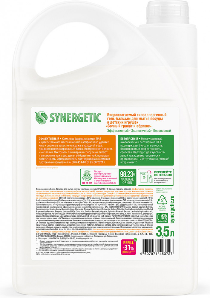 Synergetic Гель-бальзам для мытья посуды и детских игрушек «Сочный гранат и абрикос»