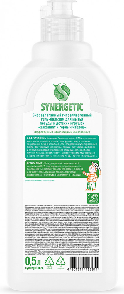 Synergetic Гель-бальзам для мытья посуды и детских игрушек «Эвкалипт и горный чабрец»