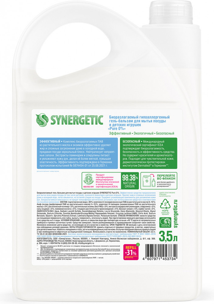 Synergetic Гель-бальзам для мытья посуды и детских игрушек «Pure 0%»