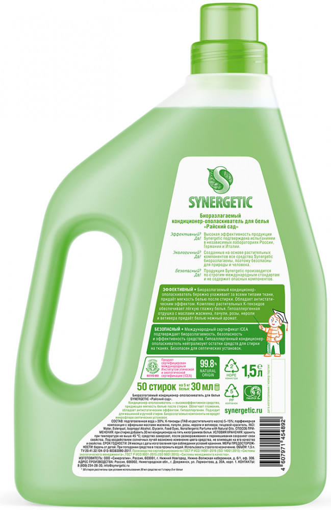 Synergetic Кондиционер биоразлагаемый для белья «Райский сад»