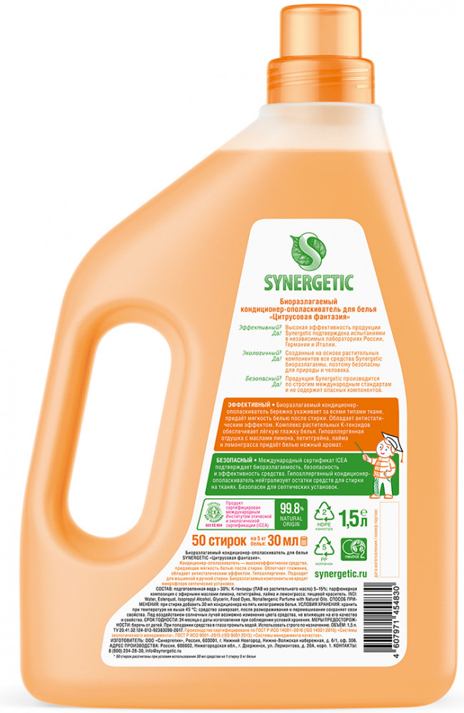 Synergetic Кондиционер для белья «Цитрусовая фантазия»