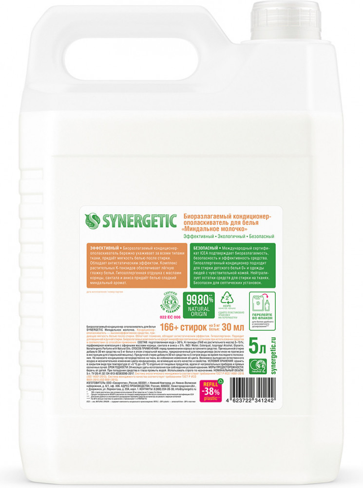 Synergetic Кондиционер для белья «Миндальное молочко»