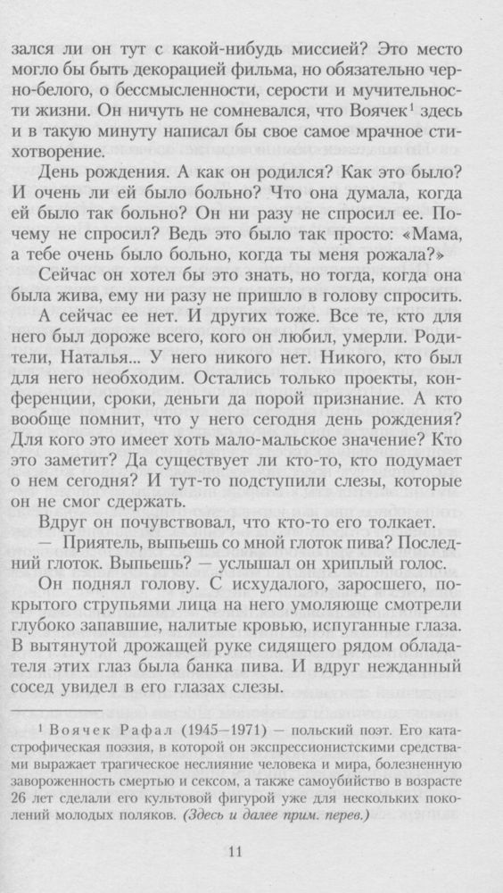 Первый раз прочитала роман лет пять назад и ... забыла, заказала книгу, читая отзывы, и когда стала читать, поняла, что текст то знакомый. На любителя произведение. Мне роман не понравился. Не зацепило вообще. Но почитать стоит каждому, может кто-то и найдет там что-то очень близкое и поучительно-жизненное :)