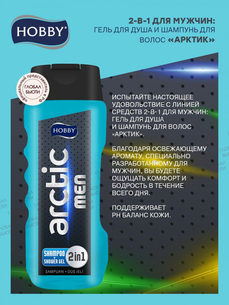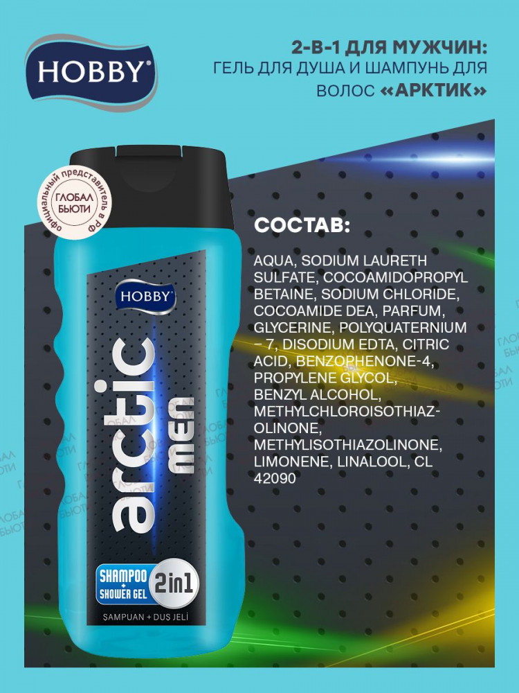 HOBBY Шампунь-гель для душа 2 в 1 «Men Arctic»-20% +15 запах густота геля качество шампуня