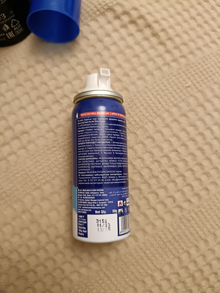 Всё-таки это пена для бритья, а не крем. В описании пишется что крем, а в способе применения - тюбик. Но по факту - баллончик. Указана только масса 50 г. Объём "на глаз" - 60-70 мл. В любом случае, меньше чем 100 мл (которые разрешены для ручной клади). Отличное решение для поездок. Есть наклейка на казахском языке, но мелкий шрифт. Это из-за компактного корпуса. Но как пользоваться баллончиком, наверное, все знают? Самой пеной не пользовался - оставил на потом.