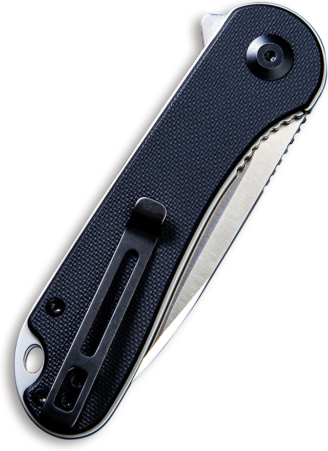 В стандартных ножах среднего ценового сегмента для создания рукояти используется композитный материал G10. Даже если вы забудете нож на солнце, материал рукояти не деформируется. Стеклотекстолит G10 не впитывает влагу и запахи. Материал показывает высокую цепкость и не скользит в руке, даже ладонь мокрая. Также в рукоять встроена специальная клипса, с помощью которой нож удобно повесить на карман. На пятке ножа есть отверстие для темляка. Civivi Elementum удобно носить не только каждый день, но и отправляться с ним в далекие поездки. Форму ножа Drop point чаще всего выбирают для клинков на каждый день. Плоская часть лезвия сужается к концу лезвия и создает по форме «каплю». Это увеличивает прочность клинка и уменьшает давление на кончик ножа. Drop point исключает надломы и микротрещины по краю ножа. Замок Liner Lock удерживает лезвие в рукоятке. Нож гарантировано не раскроется и не поранит владельца. Благодаря керамическому подшипнику клинок плавно открывается и закрывается.