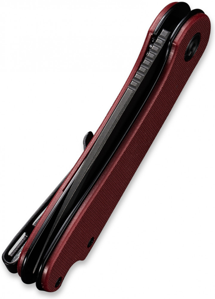 Финиш лезвия обработан с помощью техники StoneWashed. Шлифовка добавляет стали матовый оттенок и оставляет мелкие царапины. Такой эффект маскирует повреждения, которые неизбежно появляются в ходе применения. Клинок долго сохраняет первоначальный вид, как если бы вы купили клинок только вчера. В стандартных ножах среднего ценового сегмента для создания рукояти используется композитный материал G10. Даже если вы забудете нож на солнце, материал рукояти не деформируется. Стеклотекстолит G10 не впитывает влагу и запахи. Материал показывает высокую цепкость и не скользит в руке, даже ладонь мокрая. Также в рукоять встроена специальная клипса, с помощью которой нож удобно повесить на карман. На пятке ножа есть отверстие для темляка. Civivi Elementum удобно носить не только каждый день, но и отправляться с ним в далекие поездки.