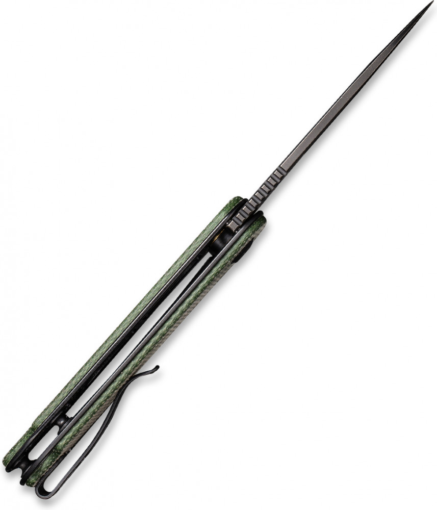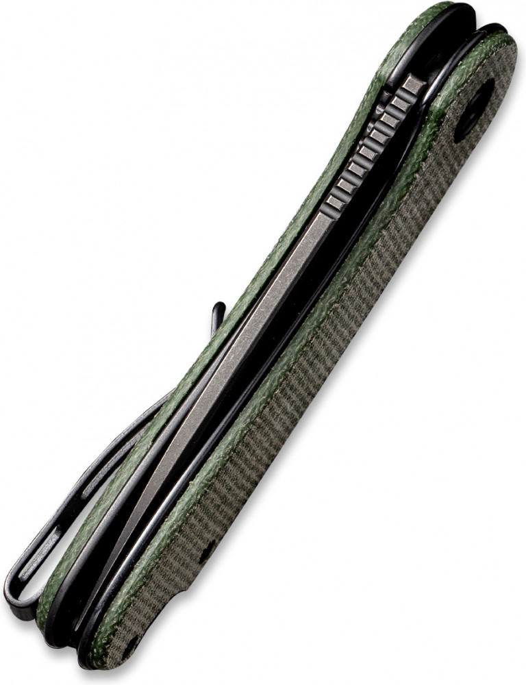 Для рукояти этой модели подобран материал Micarta. Микарта устойчива к перепаду температур и не впитывает влагу, различные запахи. Микарта не скользит в руке, даже если ладонь вдруг намокнет. Сбоку есть специальная клипса, с помощью которой нож удобно повесить на карман. На пятке ножа есть отверстие для темляка. Берите с собой Civivi Elementum каждый день или отправляйтесь в путешествие.