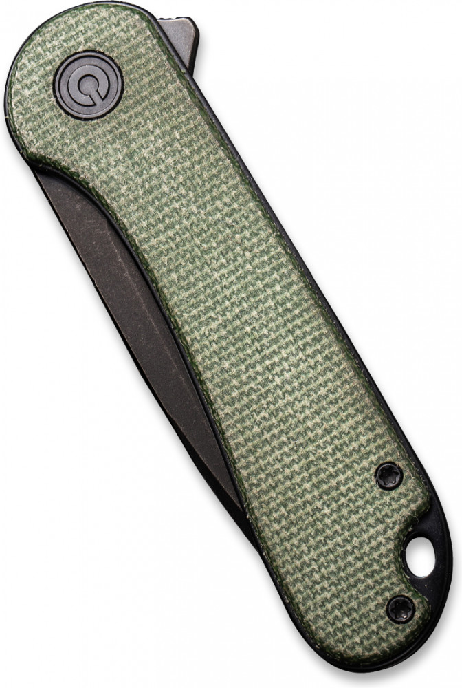 Зеленая рукоять из материала Micarta, высокоуглеродистая сталь D2, клипса и отверстие для темляка, шлифовка StoneWashed. Замок Liner Lock крепко держит лезвие в рукояти. Форма лезвия drop point универсальная. Civivi Elementum - складной нож в поход, на рыбалку, на охоту и на каждый день.