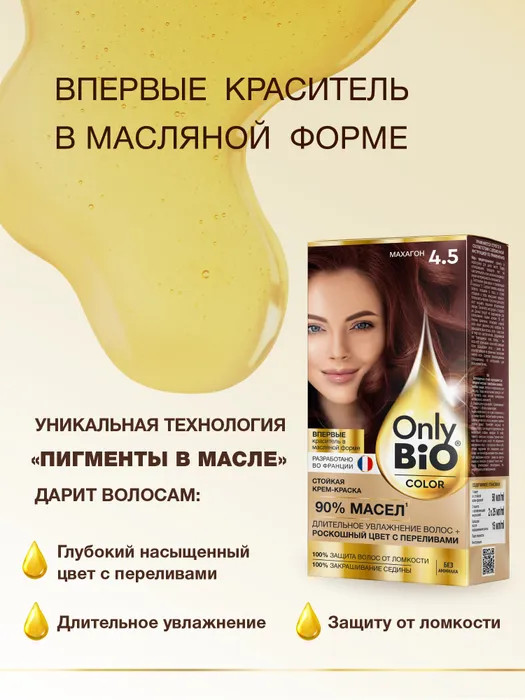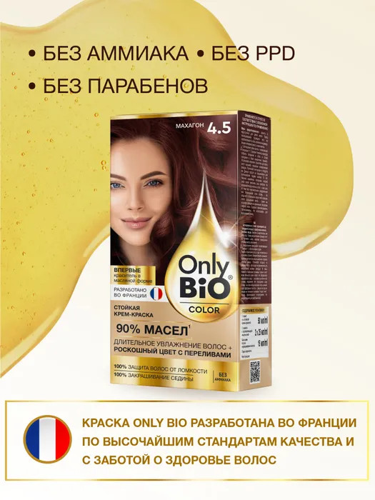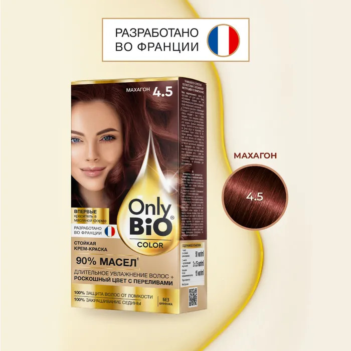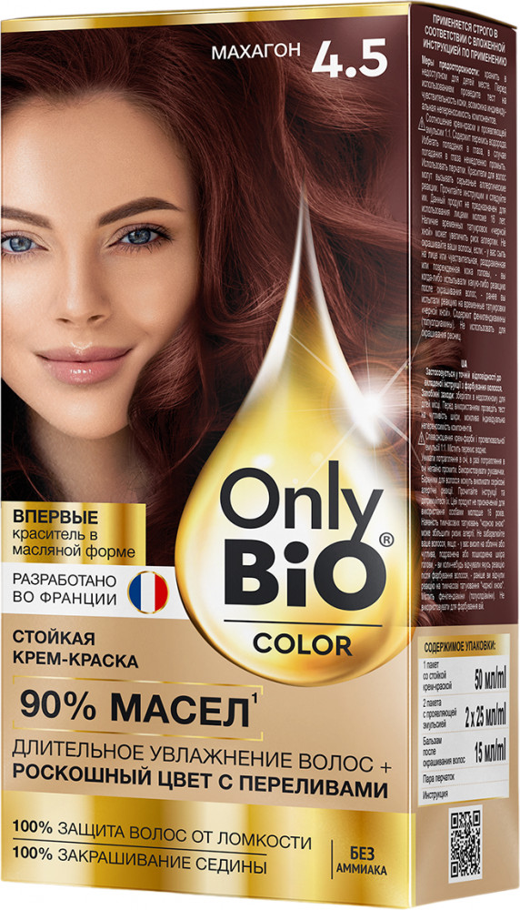 Only Bio color Крем-краска для волос стойкая «Only bio color», оттенок 4.5 Махагон