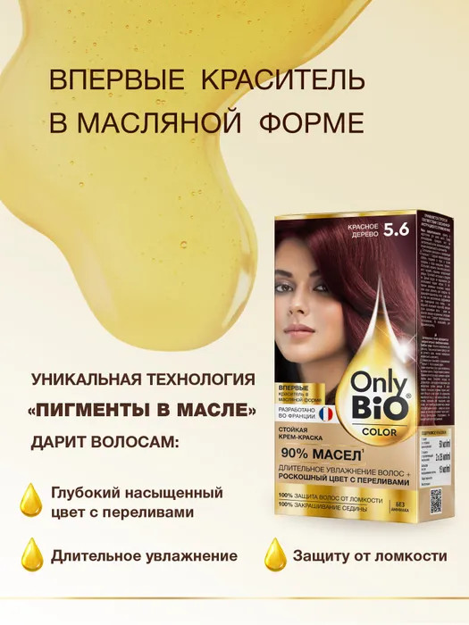 Only Bio color Крем-краска для волос стойкая «Only bio color», оттенок 5.6 Красное дерево