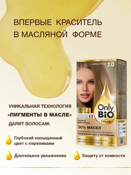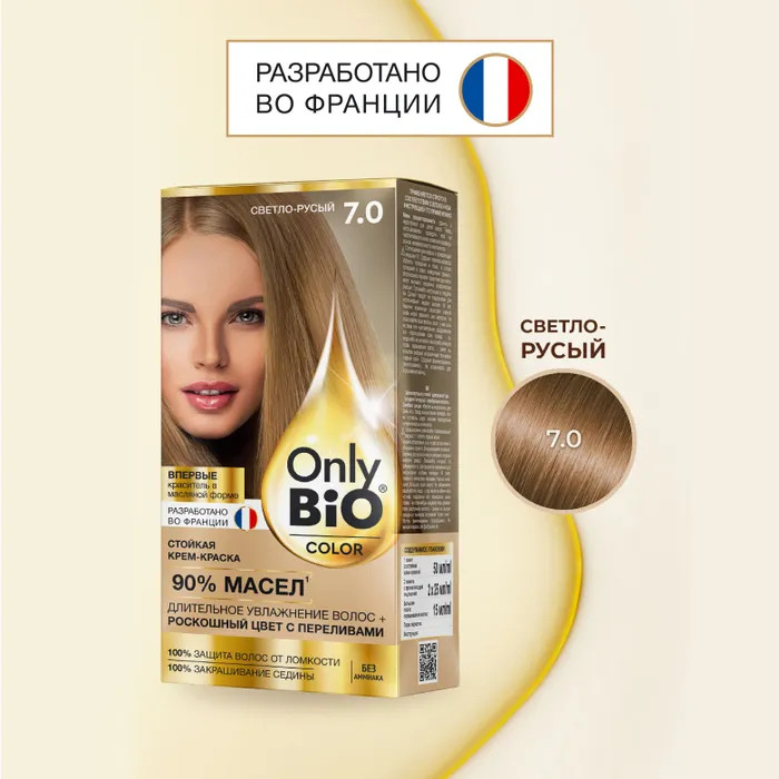 Only Bio color Крем-краска для волос стойкая «Only bio color», оттенок 7.0 Светло-русый