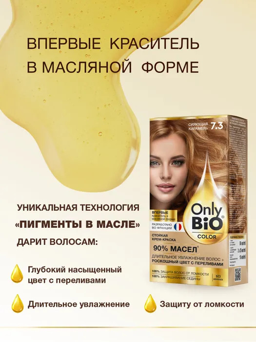 Only Bio color Крем-краска для волос стойкая «Only bio color», оттенок 7.3 Сияющая карамель