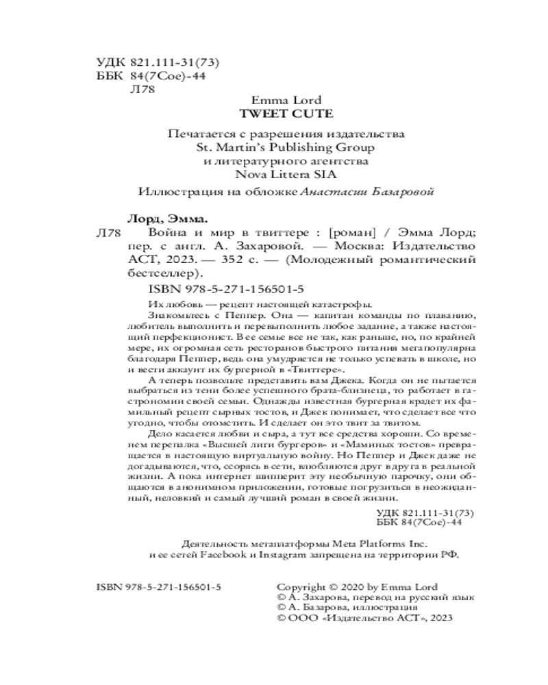 Дело касается любви и сыра, а тут все средства хороши. Со временем перепалка «Высшей лиги бургеров» и «Маминых тостов» превращается в настоящую виртуальную войну. Но Пеппер и Джек даже не догадываются, что, ссорясь в сети, влюбляются друг в друга в реальной жизни. А пока интернет шипперит эту необычную парочку, они общаются в анонимном приложении, готовые погрузиться в неожиданный, неловкий и самый лучший роман в своей жизни. |
