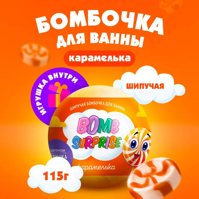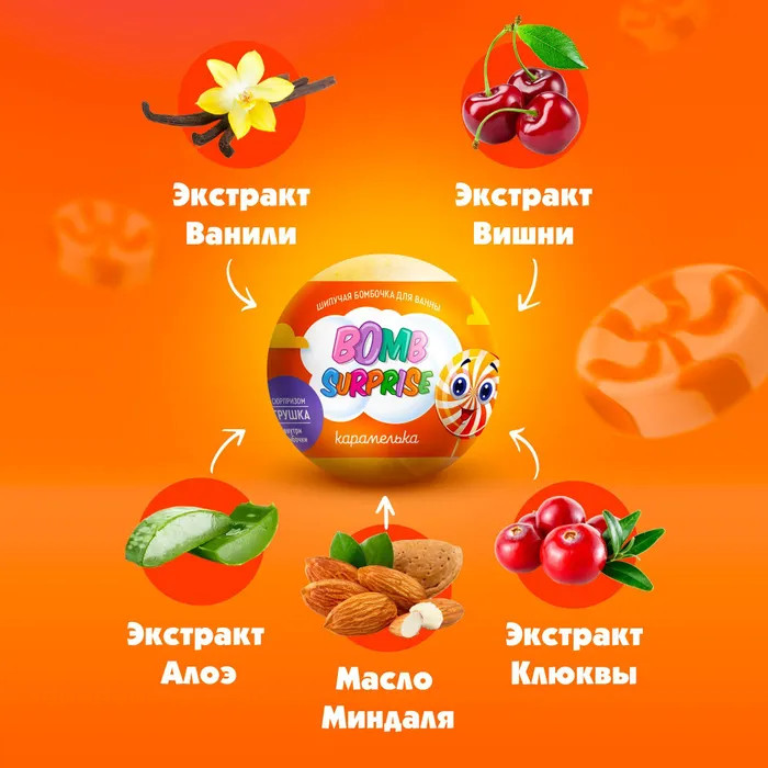 Фитокосметик Бомбочка для ванны шипучая с игрушкой «Карамелька»