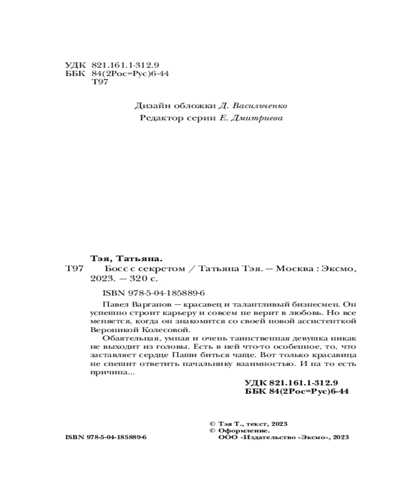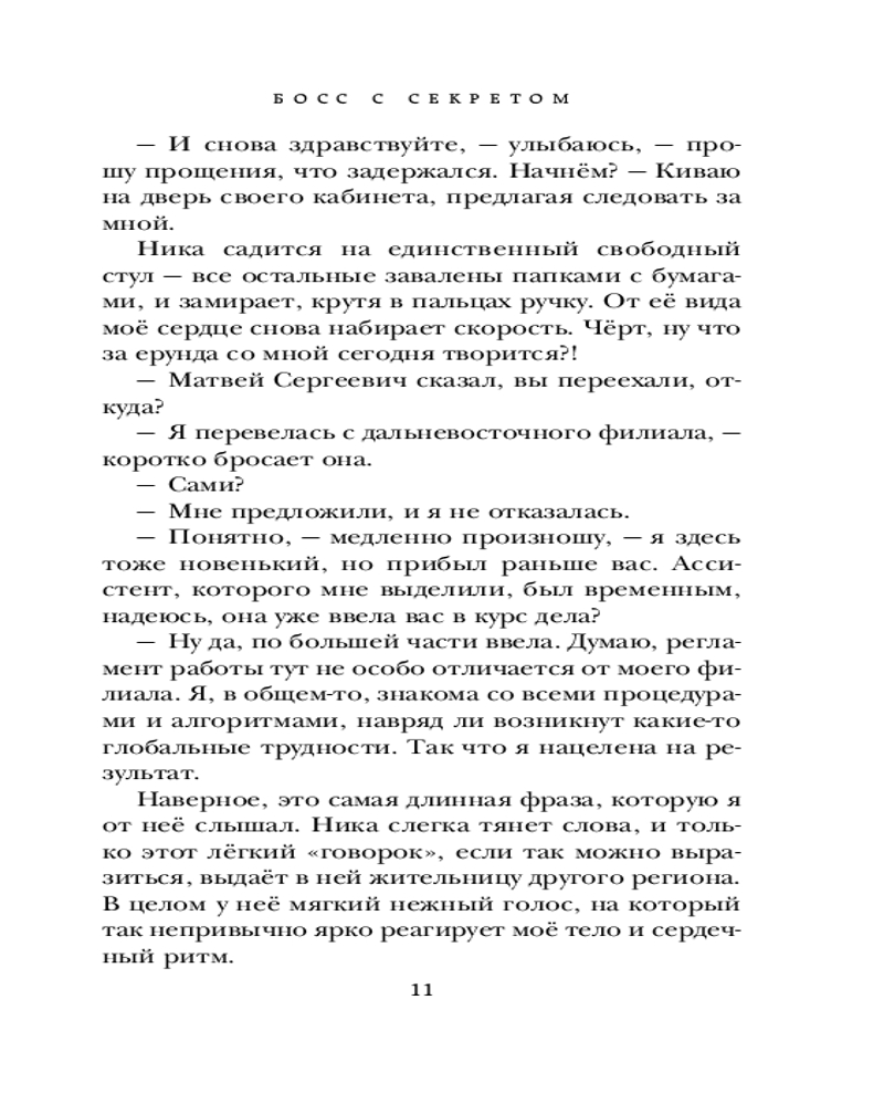 Босс с секретомВ данный момент этот товар отсутствует в продаже. Возможно, у нас найдется аналогичный или похожий товар здесь. Серия: Мой любимый босс Вероника Колесова обожает свою работу. Но когда ее переводят в нижегородский филиал, она не подозревает, что ее начальником станет сын владельца фирмы Павла Варганова. В темноволосого красавца влюблен весь офис, а слухи о нем слышны из каждого кабинета. Ника точно знает, что ей нужно держаться подальше от своего босса, вот только сил сопротивляться с каждым днем остается все меньше... |