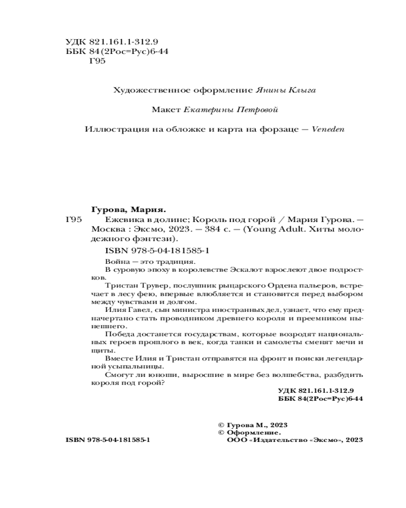 Серия: Young Adult. Хиты молодежного фэнтези Дебютный роман Марии Гуровой «Ежевика в долине. Король под горой» из цикла о Спящем короле.