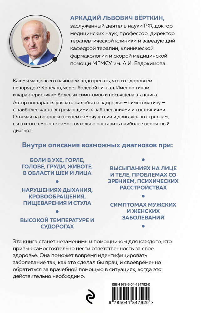 В данный момент этот товар отсутствует в продаже. Возможно, у нас найдется аналогичный или похожий товар здесь. Серия: Практикум здоровья. Полезные книги от российских врачей Как мы чаще всего начинаем подозревать, что со здоровьем непорядок? Конечно, через болевой «сигнал». Именно типам и характеристикам болевых симптомов и посвящена эта книга.