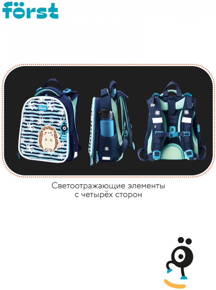 💳 Оплатить за товар можно при получении 🇰🇿 Есть бесплатная доставка по Казахстану от 1 дня 🎁 Копите бонусы с каждой покупки Серия: Blue hedgehog Эргономичный ранец серии F-Top рассчитан на учеников младшей и средней школы. В ранце предусмотрены 2 отделения с разделителями для тетрадей, 2 боковых кармана, внутренний органайзер и съемный карабин для ключей. Модель оснащена правильной анатомической спинкой со спонжевыми вставками, покрытыми мягким вентиляционным материалом, который предотвращает натирание спины и плеч ребенка. Специальный механизм на спинке позволяет адаптировать плечевые ремни под рост ребенка. Нагрудное крепление обеспечивает плотную фиксацию ранца, не дает лямкам спадать с плеч во время движения. Дно ранца покрыто водонепроницаемым материалом и оснащено пластиковыми ножками для защиты содержимого от влаги и легкого ухода за изделием. Наличие светоотражающих элементов — это важный фактор безопасного движения ребёнка в тёмное время суток. В подарок к ранцам данной серии идут модные аксессуары в виде брелоков. |