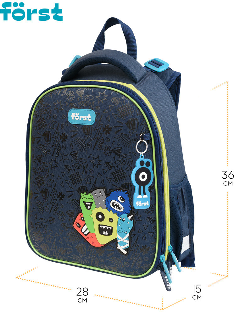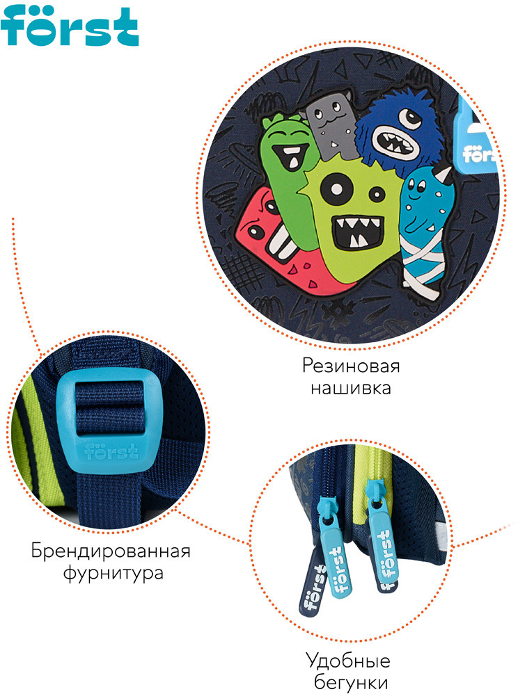 💳 Оплатить за товар можно при получении 🇰🇿 Есть бесплатная доставка по Казахстану от 1 дня 🎁 Копите бонусы с каждой покупки Серия: Monsters Эргономичный ранец серии F-Top рассчитан на учеников младшей и средней школы. В ранце предусмотрены 2 отделения с разделителями для тетрадей, 2 боковых кармана, внутренний органайзер и съемный карабин для ключей. Модель оснащена правильной анатомической спинкой со спонжевыми вставками, покрытыми мягким вентиляционным материалом, который предотвращает натирание спины и плеч ребенка. Специальный механизм на спинке позволяет адаптировать плечевые ремни под рост ребенка. Нагрудное крепление обеспечивает плотную фиксацию ранца, не дает лямкам спадать с плеч во время движения. Дно ранца покрыто водонепроницаемым материалом и оснащено пластиковыми ножками для защиты содержимого от влаги и легкого ухода за изделием. Наличие светоотражающих элементов — это важный фактор безопасного движения ребёнка в тёмное время суток. В подарок к ранцам данной серии идут модные аксессуары в виде брелоков. |