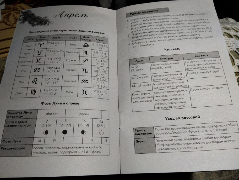 Ожидала немного более подробного календаря для посева. С числами только апрель, в остальные месяцы надо самим додумывать, что садить и сеять.