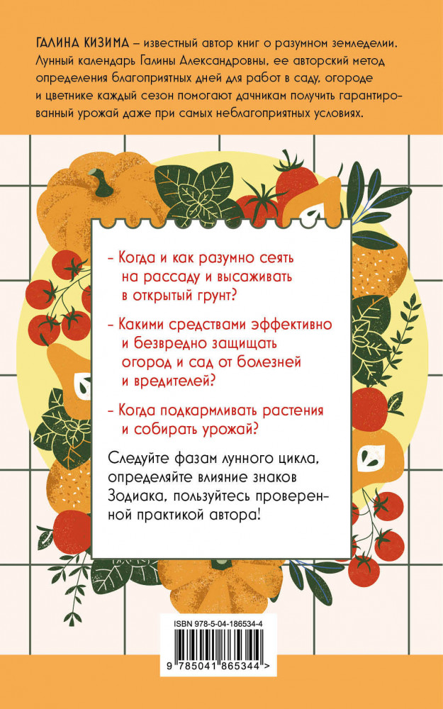 Лунный посевной календарь для любимых дачников 2024 от Галины Кизимыотличный лучшее не подробный В данный момент этот товар отсутствует в продаже. Возможно, у нас найдется аналогичный или похожий товар здесь. Серия: Лунные календари 2024 Лунный посевной календарь от известного питерского автора Галины Кизимы каждый год пользуется успехом у миллионов дачников. Ведь ее методика разумного земледелия работает даже в самых неблагоприятных условиях! Благодаря проверенной практике и точным таблицам лунных фаз поможет любому дачнику своевременно посеять, эффективно подкормить и защитить растения. Вы узнаете, на что обратить особое внимание во время работ на участке, какие дни согласно лунным циклам наиболее благоприятны для получения богатого урожая, когда собирать урожай и как правильно его хранить. Даже начинающий садовод и огородник легко разберется в таблицах и найдет ответы на самые актуальные вопросы! |